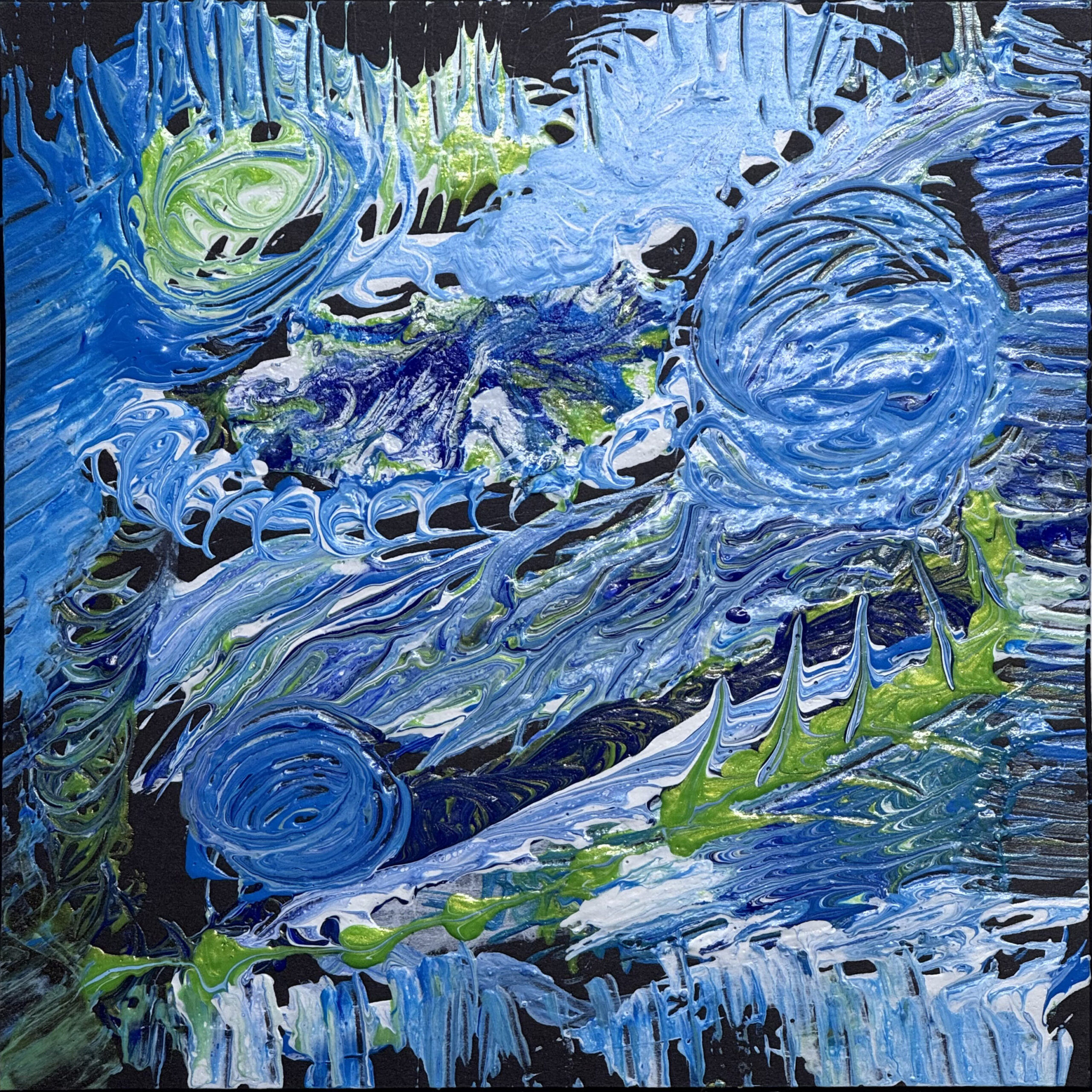 If you take the coordinates 19°05’N 20°30’E in Google Maps or Google Earth, you will land right there in the Chadian desert, just above this fantastic lakes. A Q-code on the original acrylic painting leads the viewer there.