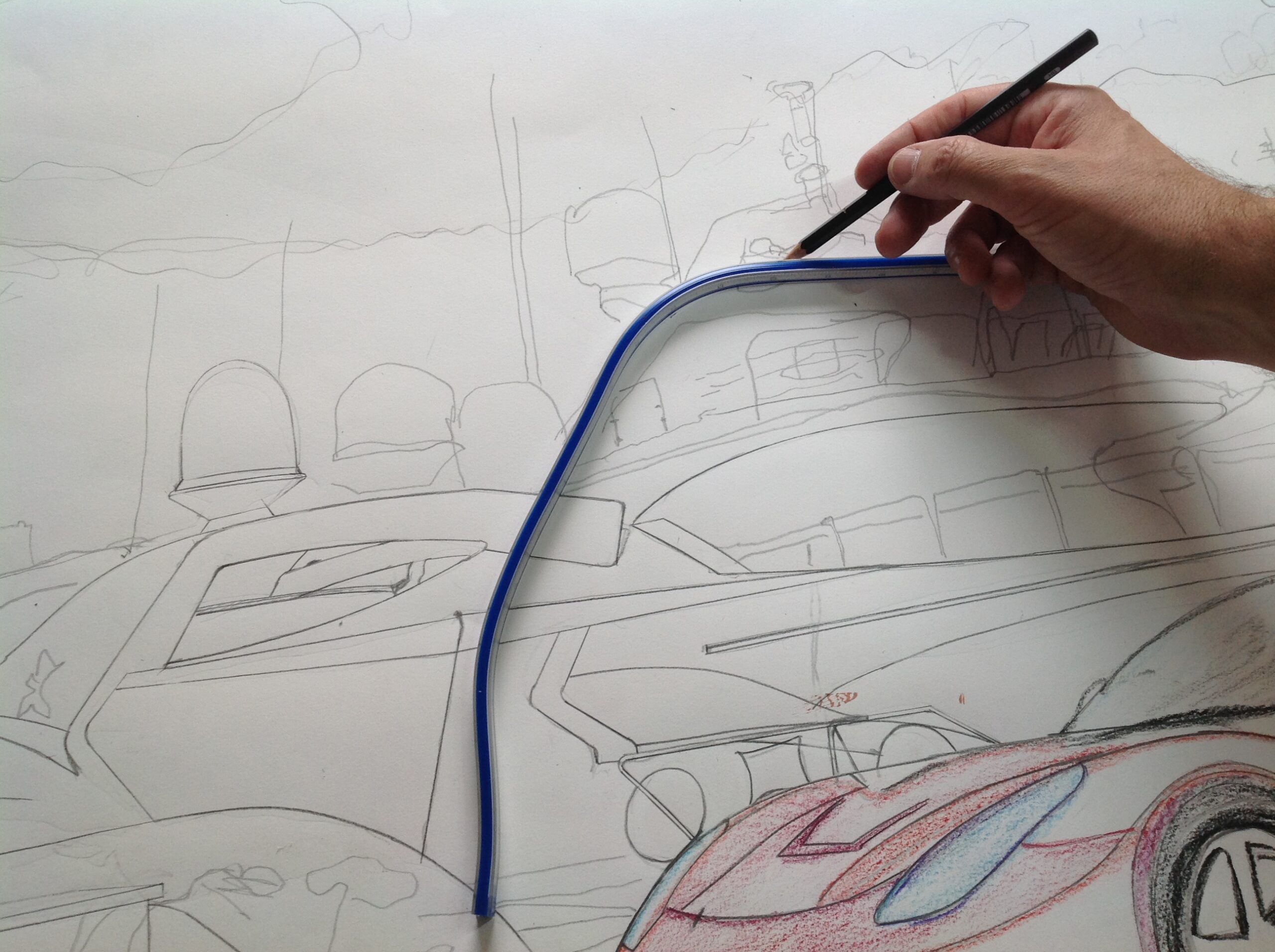 Als Malwerkzeuge und Hilfsmittel dienen natürlich Pinsel in unterschiedlichen Formen und Größen, Spachtel, Zahnspachtel, Schwämme, Malerwalzen, Pappen und Folien für Abklatschtechnik, Designerstifte, Gelstifte, Aquarell- und Bleistift, Sprühflaschen, Holzstöckchen, Bürsten, Siebe, Kreppband, Schablonen, Lineale, Kurvenlineal, Zirkel ….